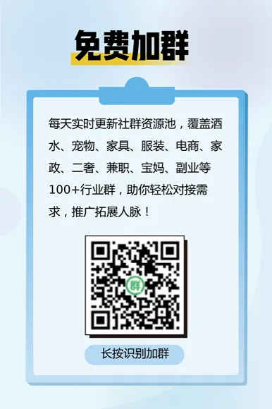 已覆盖全国各省市电商、家政保洁、服装、酒水、家具、宠物、二手车、闲置、宝妈母婴等100+行业群实时更新,助你轻松对接需求、拓展人脉客户!全国行业群