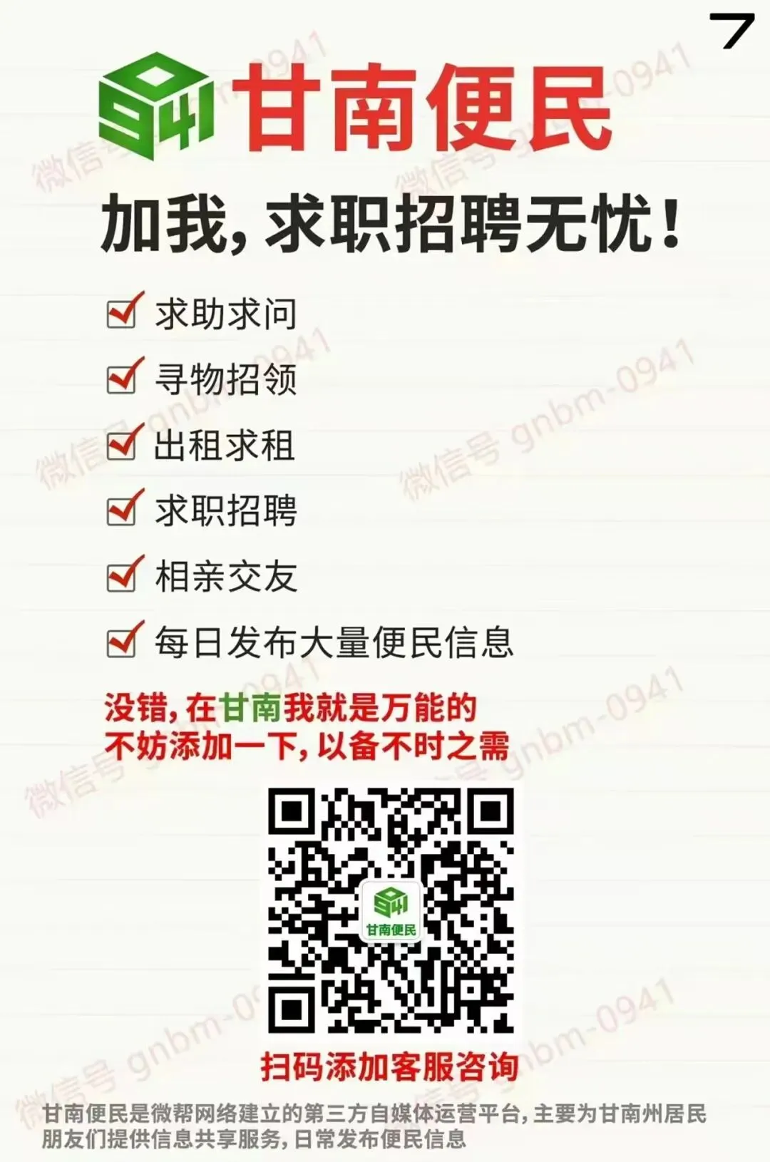 加下面微信,免费发布便民信息