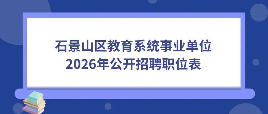 石景山区教育系统事业单位拟公开招聘教师25人,报名时间为2026年1月23日9:00至2026年1月29日17:00。