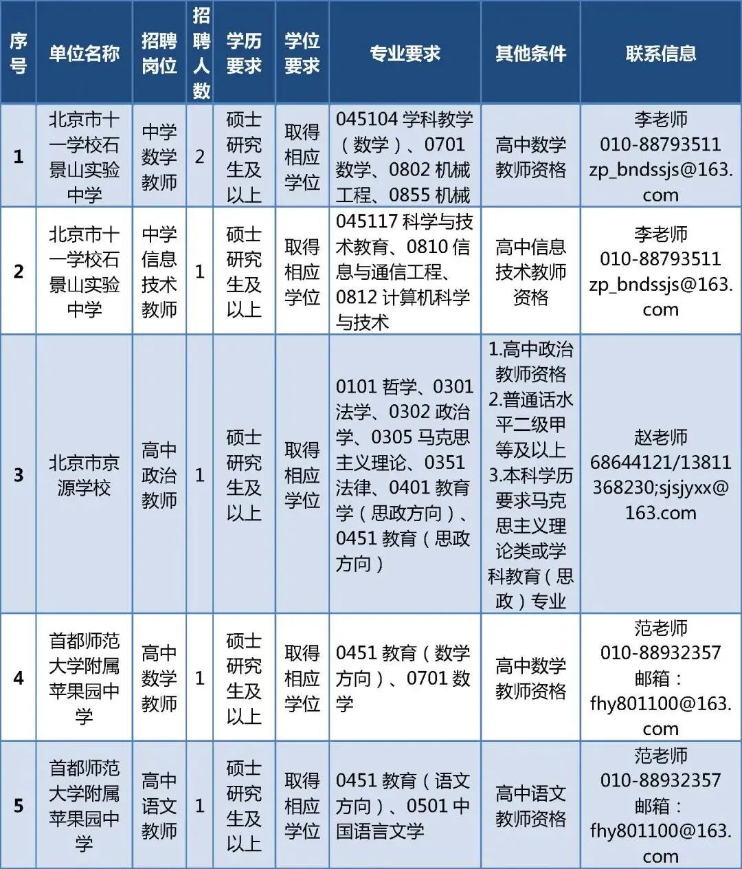 (五)《石景山区教育系统事业单位2026年公开招聘职位表》(以下简称《职位表》)中所要求的专业、学历、学位需对应报考者的最高学历、学位,应届毕业生以即将获得的最高学历、学位进行报考,专业要求参照教育部专业目录执行;