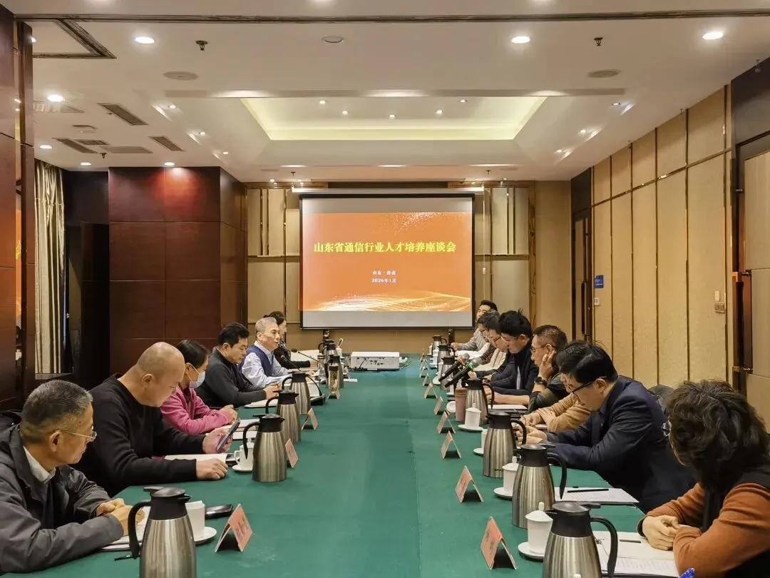 2026年1月22日下午,山东省通信行业协会在济南召开通信行业人才培养座谈会。山东省通信行业协会常务副理事长朱林玉、秘书长刘善武、专家委员会、电信用户服务专业委员会、工程建设与运维专委会相关负责同志,山东信息职业技术学院、山东技师学院等合作院校有关部门负责同志,以及山东省邮电工程有限公司、中移铁通有限公司山东分公司、山东省保时通信息网络有限公司相关部门负责同志出席了会议。本次会议旨在搭建行业、院校、企业间的人才培养对话平台,共同探讨与谋划通信行业人才发展的新路径、新机制,为行业高质量发展注入强劲人才动能。