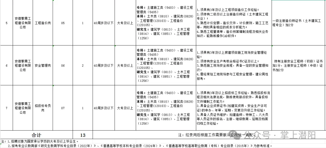 本次共招聘劳务派遣人员13名,具体岗位及信息详见《潜山市天柱山人才服务有限公司2026年公开招聘劳务派遣人员岗位表》(附件1)。