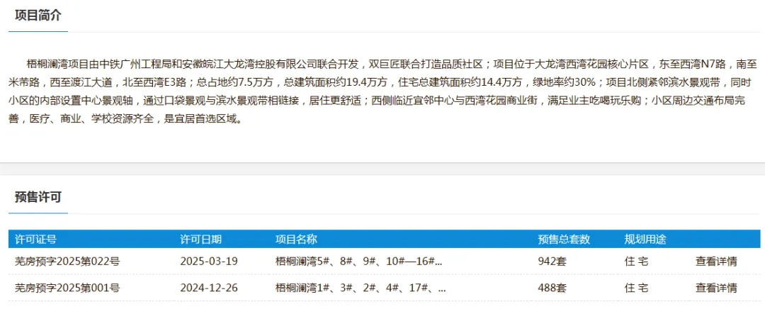 据悉,梧桐澜湾项目由中铁广州工程局和安徽皖江大龙湾控股有限公司联合开发,双巨匠联合打造品质社区;项目位于大龙湾西湾花园核心片区,东至西湾N7路,南至米芾路,西至渡江大道,北至西湾E3路;总占地约7.5万方,总建筑面积约19.4万方,住宅总建筑面积约14.4万方,绿地率约30%。