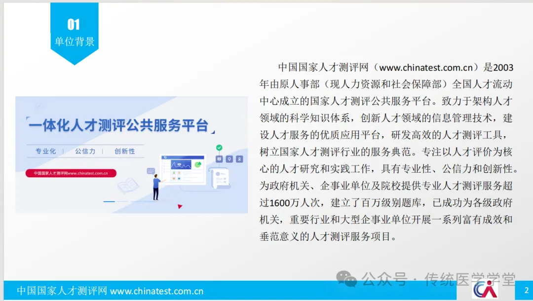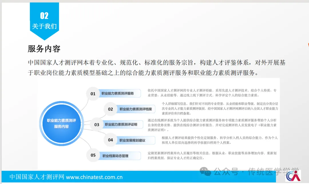 中国国家人才测评网(www.chinatest.com.cn)是2003年由国家人事部全国人才流动中心主办和创建的国家人才测评公共服务平台,是人力资源和社会保障部直属的国家专业人才测评平台,致力于架构人才领域的科学知识体系,创新人才领域的信息管理技术,建设人才服务优质应用平台,研发高校的人才测评工具,树立国家人才测评行业的服务典范。