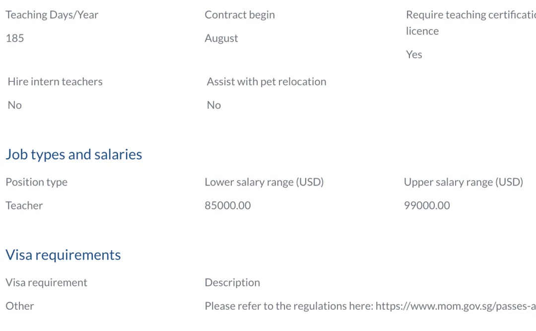 All applications must be submitted through our portal to be considered for the role. Please visit our career page [https://www.uwcsea.edu.sg/uwcsea-careers/teaching-roles] on our portal for the full job details.Our community is a dynamic, welcoming place to work, with all staff united by a shared commitment to our guiding statements. If you are as inspired by our mission to make education a force to unite people, nations and cultures for peace and a sustainable future as we are, we'd love to hear from you.With around 1,100 teaching, educational support, administrative and operations staff across both campuses, we have developed a shared commitment to care and wellbeing that underpins interactions on campus and guides how we work together to support our community.Currently, the majority of teachers are from Australia, Canada, New Zealand, the United Kingdom and the United States, while the majority of administrative and support staff are Singaporean. We are an equal opportunities employer, and welcomes applications from those who wish to join a community which is inclusive, and which celebrates diversity. One of our strategic goals is to diversify our staff and we are keen to hear from people with different backgrounds and experiences to add to our community.All teachers and many leaders, support and administrative staff participate in the Activities and Service programmes; many are also involved in the trips and expeditions organised through the Outdoor Education programme each year.Our focus on professional development and the value we place upon it means that the scope for professional learning is extensive for both teachers and for other professionals who join our community.We are committed to safeguarding our students and protecting them from harm. All those applying for a position at the College must be willing to undergo employment background checks and screening.Please explore what it means to work at UWCSEA. You can also sign-up for our alerts to be notified when positions become available, as all jobs at UWCSEA are posted on these pages.Number of Contract Days