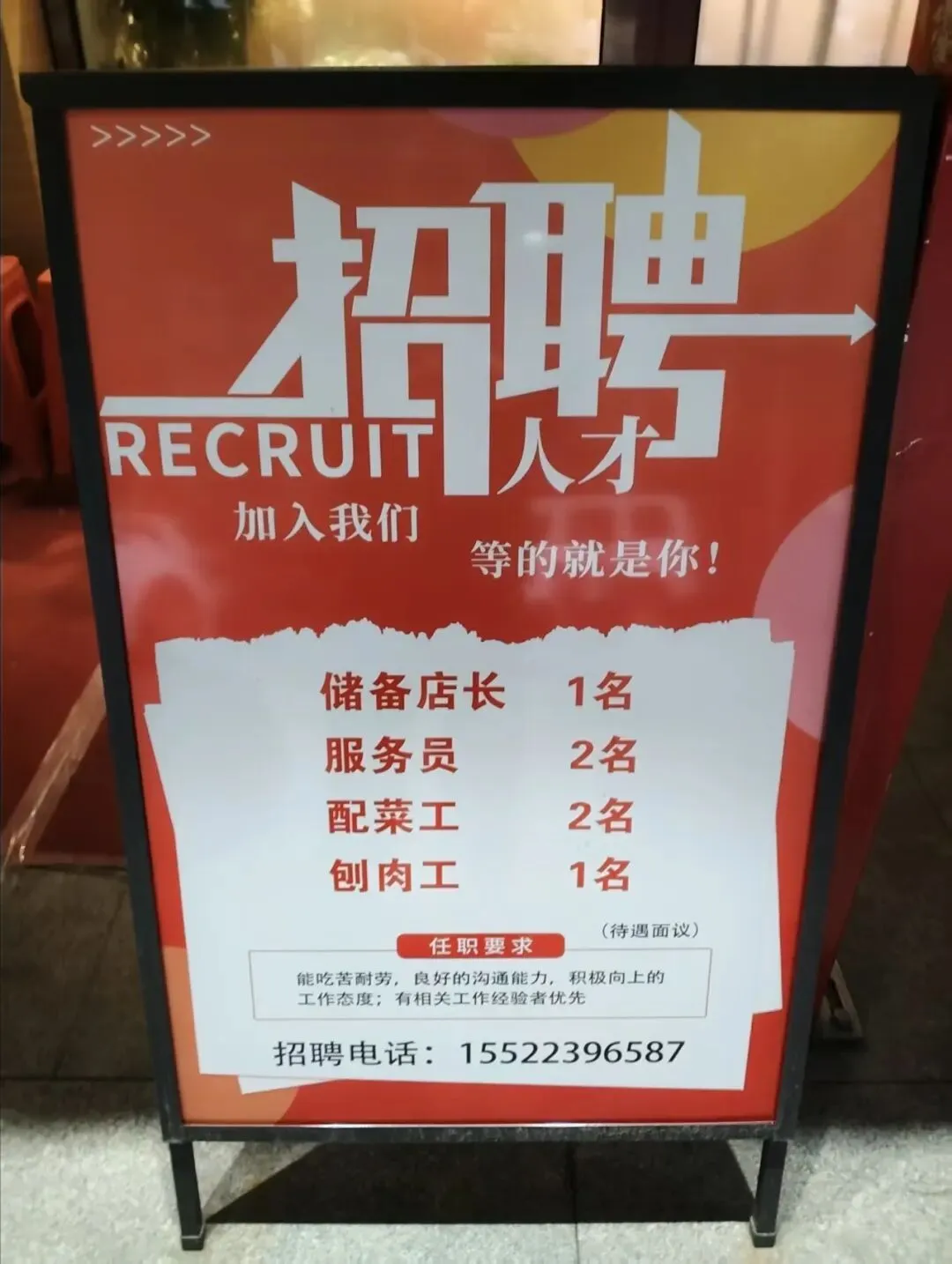 服务员、面点工、勤杂工