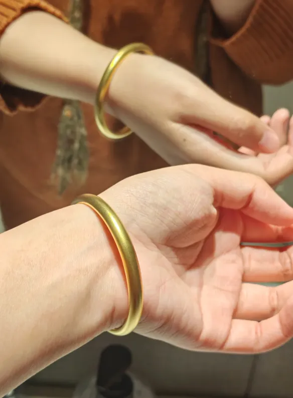 先说表面价值吧 你想 一杯咖啡二三十 电影票几十 鞋子一双七八百 你穿一年就旧了 60克金手镯就不一样 它是能摸得到的 重的 你抬手有分量的那种 今年身边金价体感就是1000到1100每克浮动 行情跳来跳去 我同事阿蕊结婚买了个30克小圈圈 两个月后复称 再问柜姐 报价就不一样了 但是手镯还在 她每天地敲键盘会啪嗒碰到桌面 那声音可实在了💫