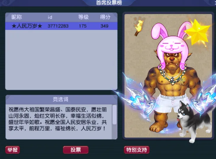 这哥们是完全不给别人一点机会啊!这竞选词,这游戏名,不比花钱收票强得多?