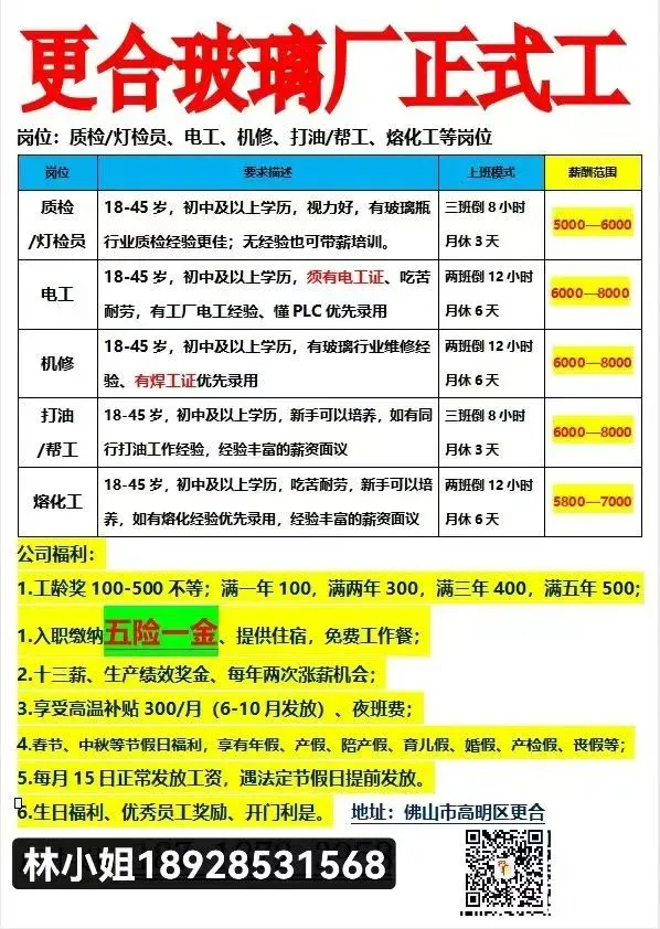 ⑲【高明尼教金属厂】招聘文案