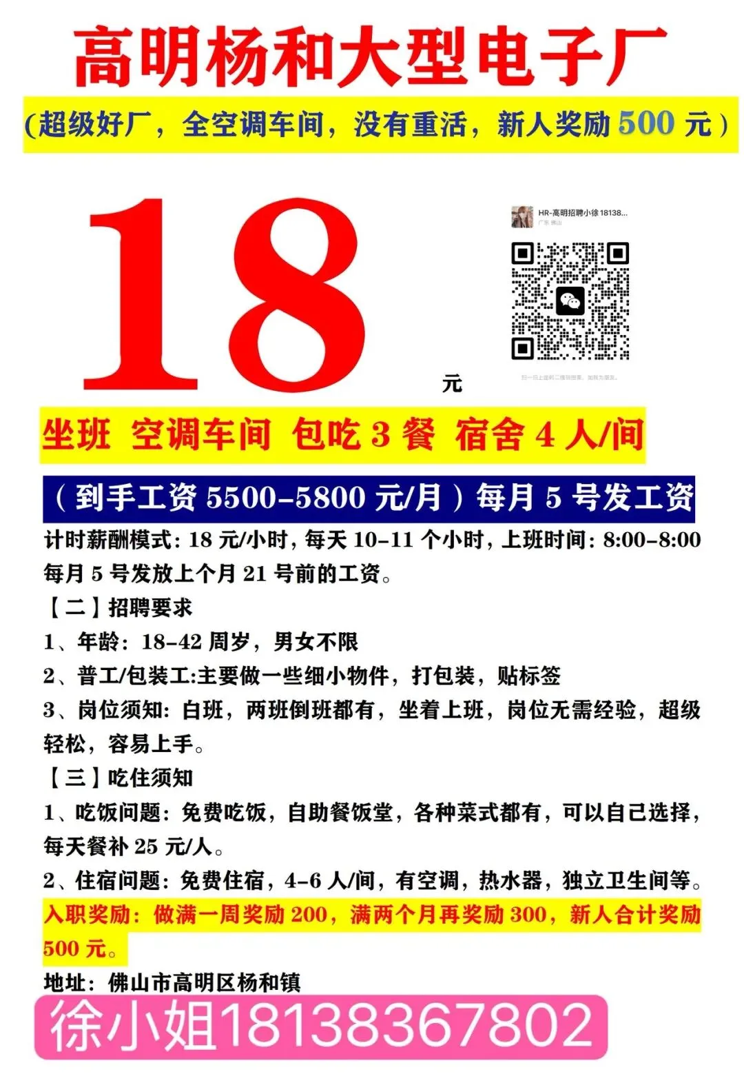 🤩包吃包住,每周可预支工资,离职结清工资,,添加微信,每天实时更新招聘信息,长期招聘,真实有效