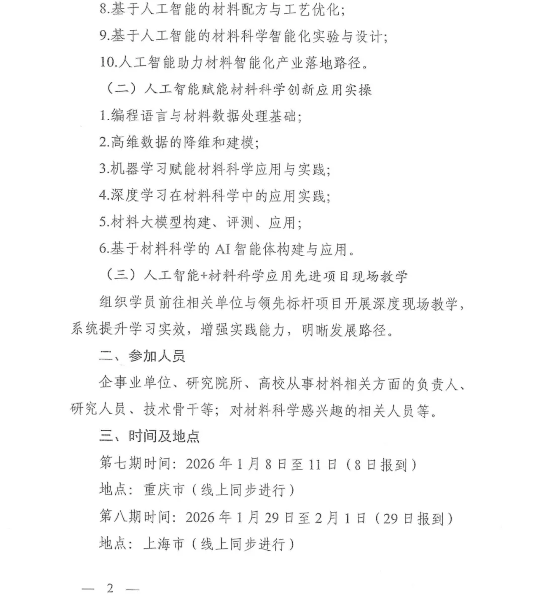 倒计时1天!工业和信息化部人才交流中心“人工智能赋能材料科学关键技术应用”高级研修班上海站课程安排公布