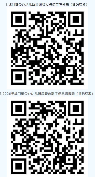 应聘者可对照招聘条件要求,上交以下资料:1.2026年虎门镇公办幼儿园应聘教职工信息填报表;2.虎门镇公办幼儿园教职员招聘初审考核表;;3.应聘者的身份证、教师资格证、学历证书、学位证书、职称证等扫描件上传至指定邮箱;4.应聘教师岗位者要录制3~5分钟的才艺技能展示视频。