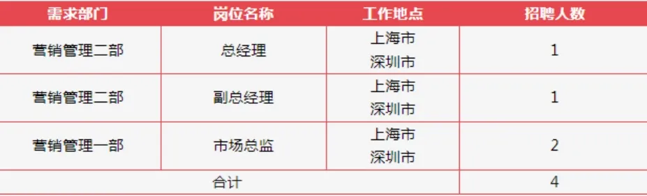 因发展需要,现面向社会公开招聘4人,相关信息如下: