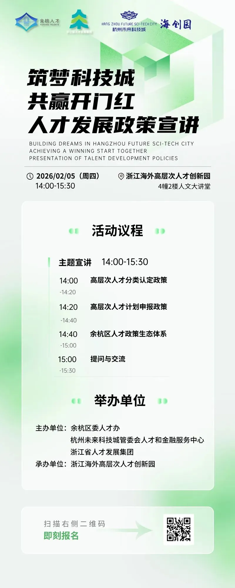 1、申报指南 | 全年可申报!最高3000万元!余杭区“海创未来”人才项目申报指南