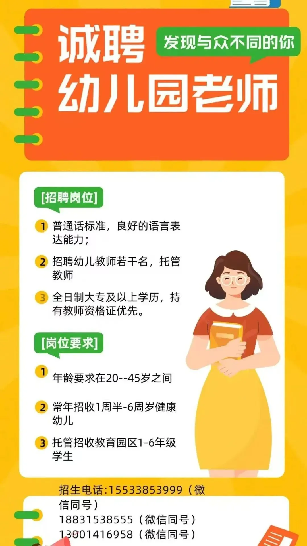 要求:有教师资格证或幼儿园工作经验,大专以上学历,45岁以下