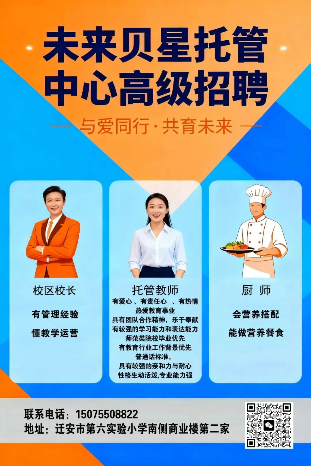 要求:大专以上学历,有2年以上管理经验,管理过超300人以幼儿园经验者优先