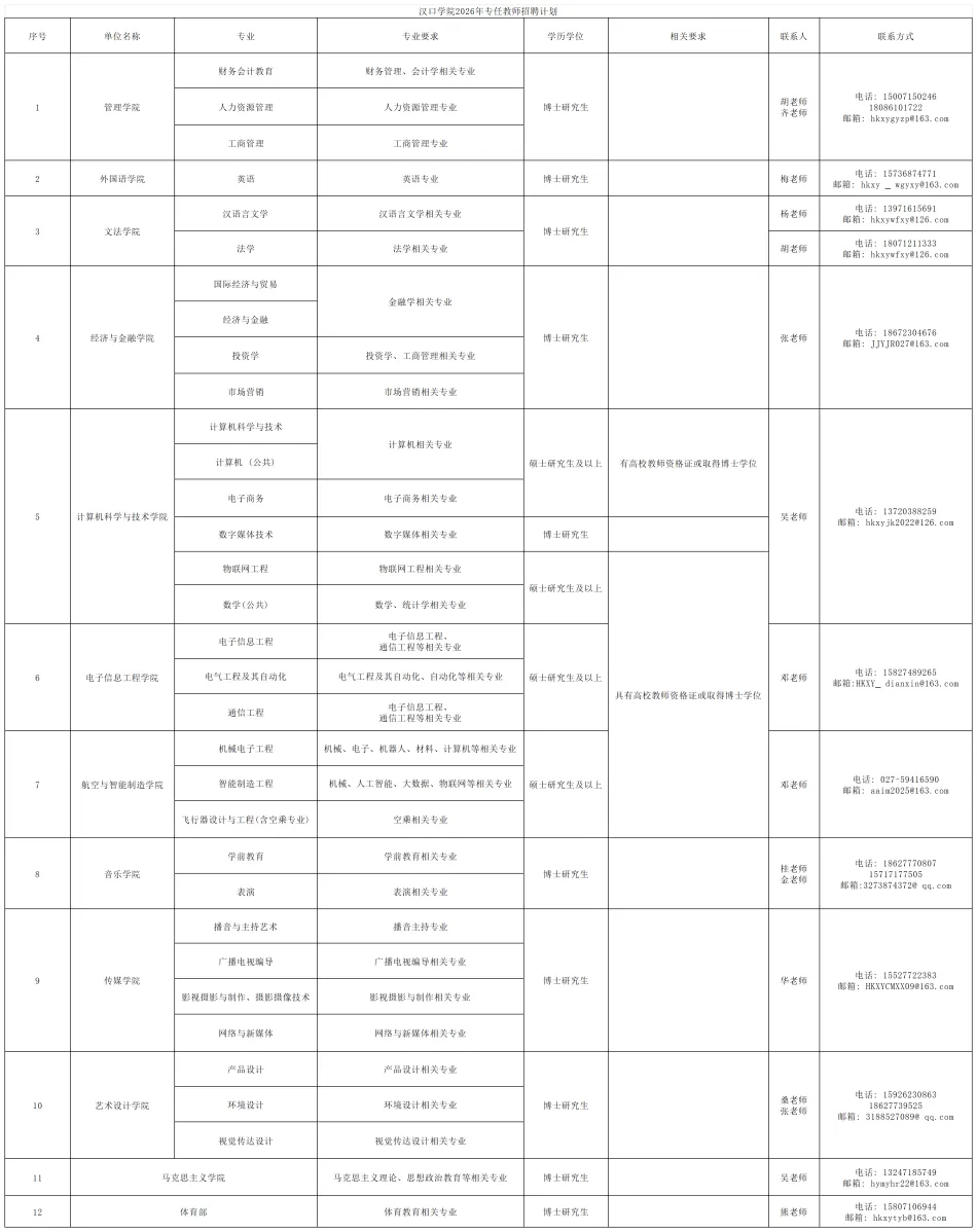 >大学招聘|汉口学院2026年高层次人才招聘启事