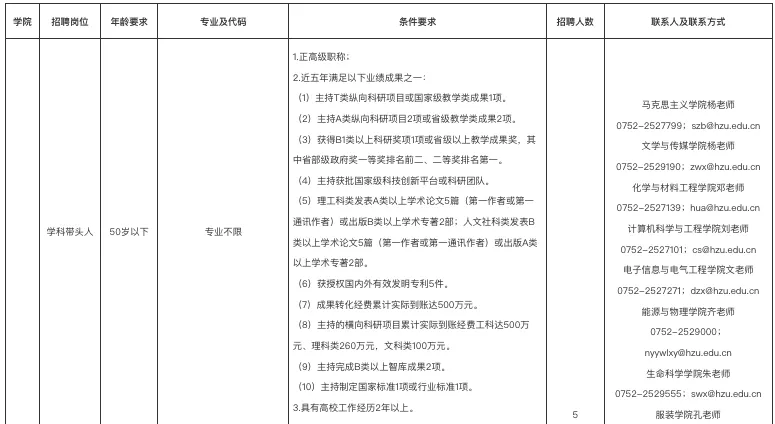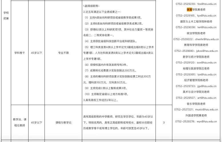 7.招聘公告要求其他条件,详见《惠州学院2026年专任教师需求岗位表》。