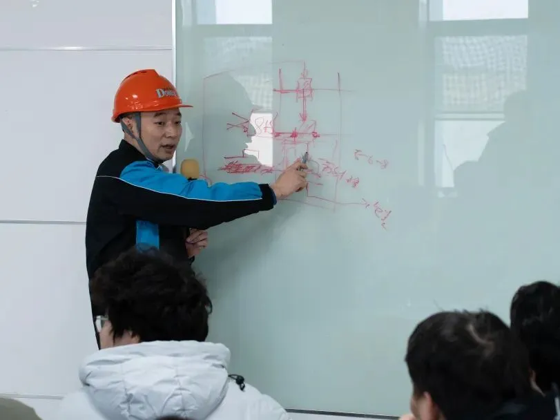 当日上午9:30,实习队抵达新津二厂,全面纵览了依托智能化系统经营管理的现代精细化工工厂全貌。不仅从讲座中了解到达威股份的建立和发展,达威工厂的设计建成与管理,更是实地走进生产现场,从中控室到高效物流仓储运转,从安全管理到各具特色的生产车间,学生们深刻感受到了工厂真实面貌,为他们对“工学”学位的理解建立了感官基础——现代精细化工工厂,远不是想象中的脏乱差,而是饱含了智能与精密的成果。学生们仔细聆听讲解,提出了“车间设计结构跟想象中不一样,是有什么样的妙用”“工厂是如何进行安环管理,从而达到国家要求”“我们专业未来在工厂可以做哪些工作”等问题,在座谈会中得到厂部管理人员的细致解答。