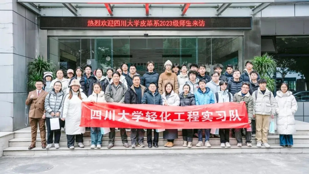 下午14:00,实习队到达并走进成都达威总部,走进应用研发实验室和检测实验室,全流程认识了皮革化学品应用于皮革生产的全流程操作和设备。学生们不仅可以通过完整的水场-涂饰-性能检测速览制革过程工艺、过程中各类皮革化学品的使用、制革各阶段性能检测方法,也了解到达威股份如何通过各部门的亲密协同实现高效发展。将书本概念与实际应用有机联系,促进知行合一,学以致用。