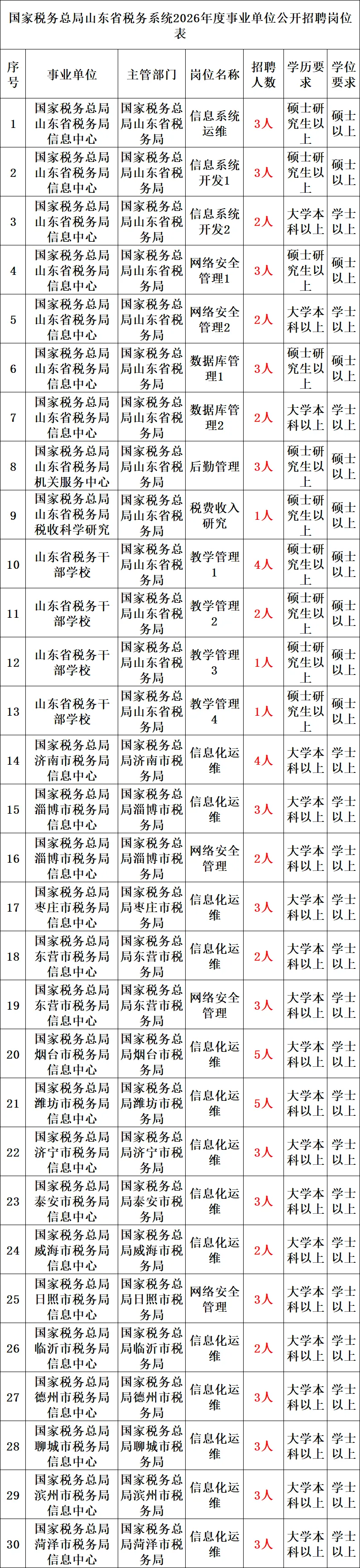 国家税务总局山东省税务局2026年度公开招聘事业单位工作人员82人