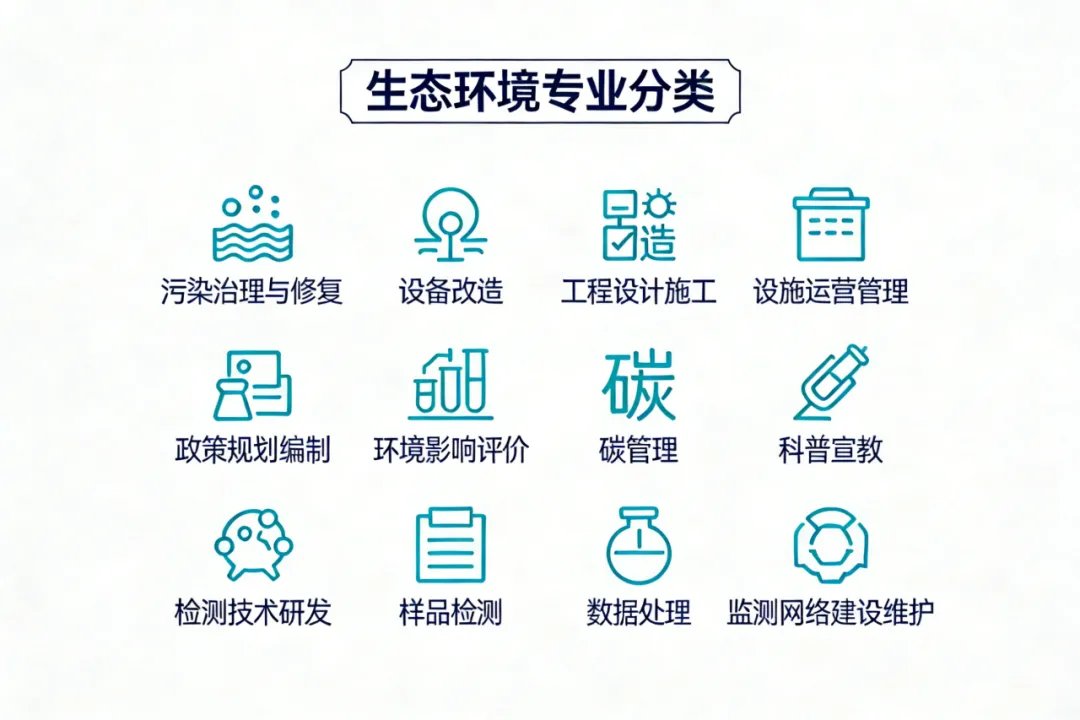 生态环境工程专业:涵盖污染治理与修复技术研发、设备改造、工程设计施工、设施运营管理等岗位;