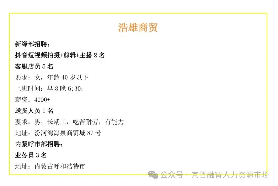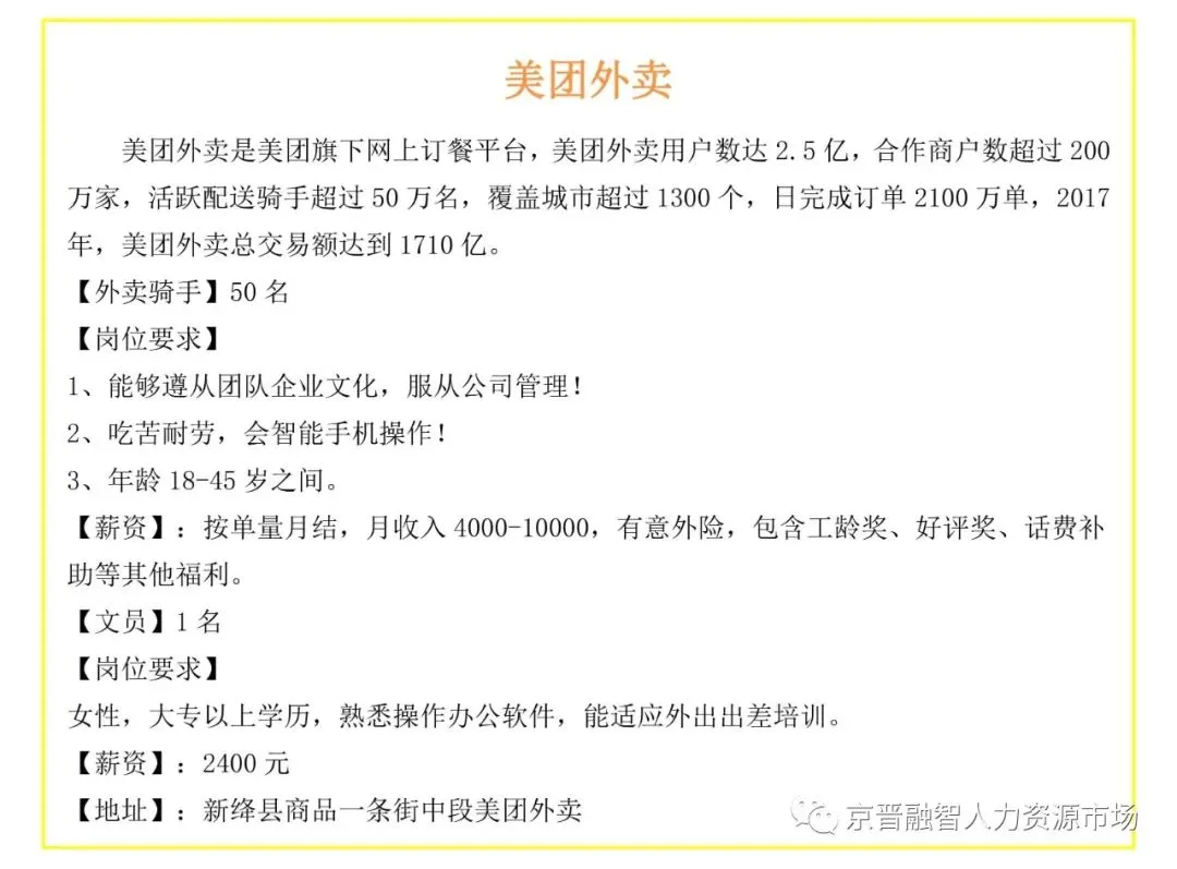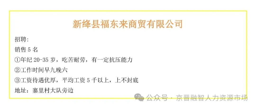 >新绛县中小企业招聘信息