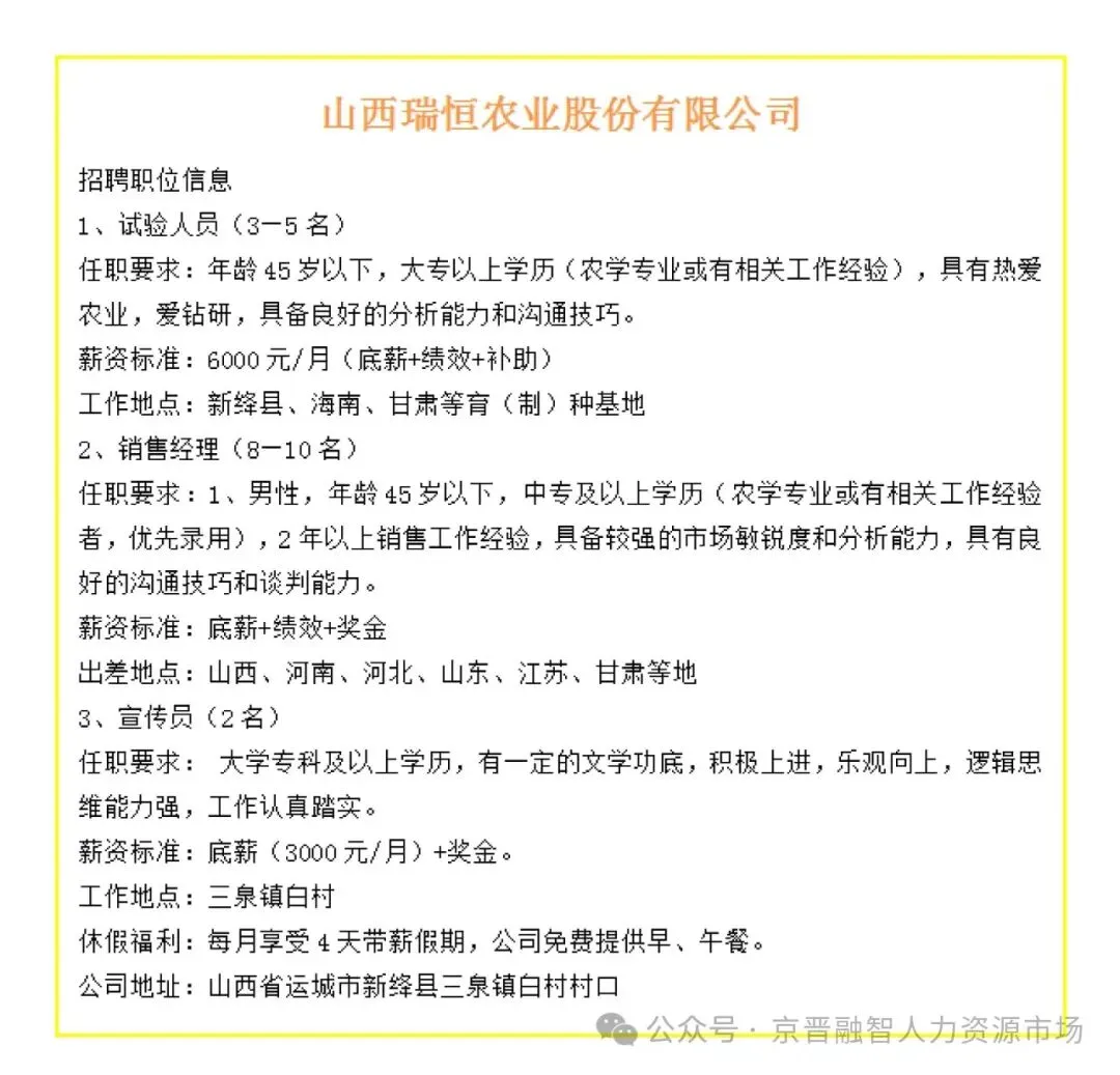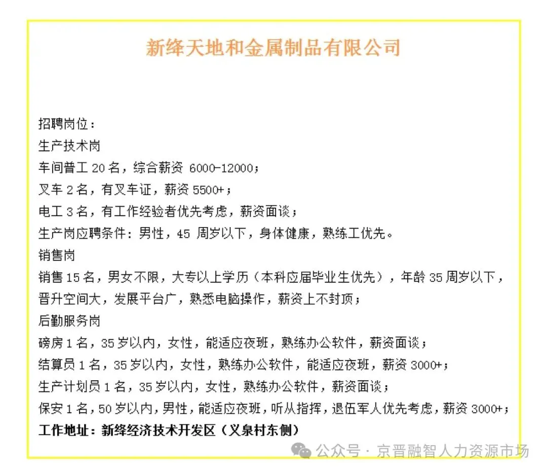 新绛县小微企业招聘信息