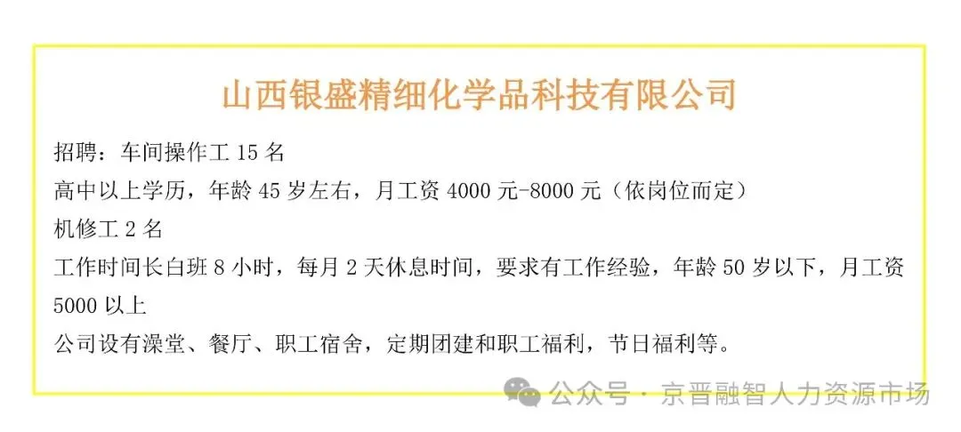 新绛县中小企业招聘信息