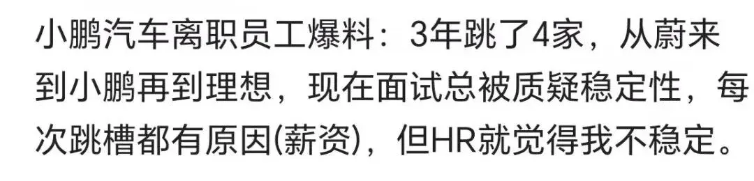 蔚来汽车离职员工,跳槽到小鹏后又调到理想,现在又在看机会,被HR嫌弃频繁