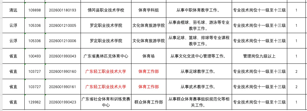 注:此次广东省招聘体育学人才 1000 多人,全部有编制,小编只是截取了广东轻工职业技术大学的体育教师岗位,还有非常多的体育岗位,大家可以下载附件查询,这次广东省招聘人才下了血本,机会非常好!