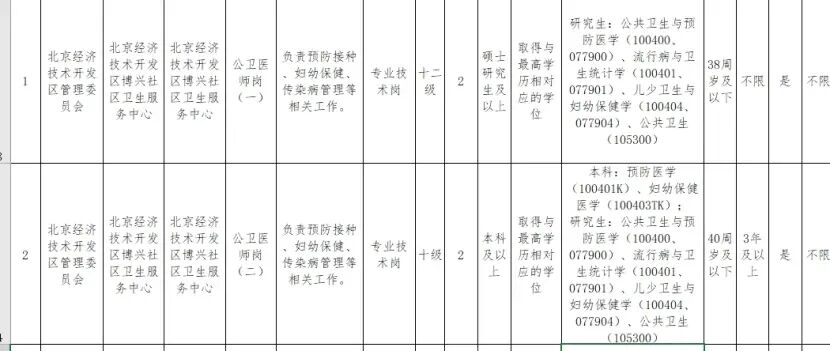 北京经济技术开发区2026年卫生健康领域事业单位公开招聘公告