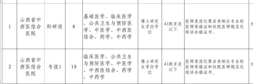 山西省中西医结合医院2026年公开招聘博士研究生公告