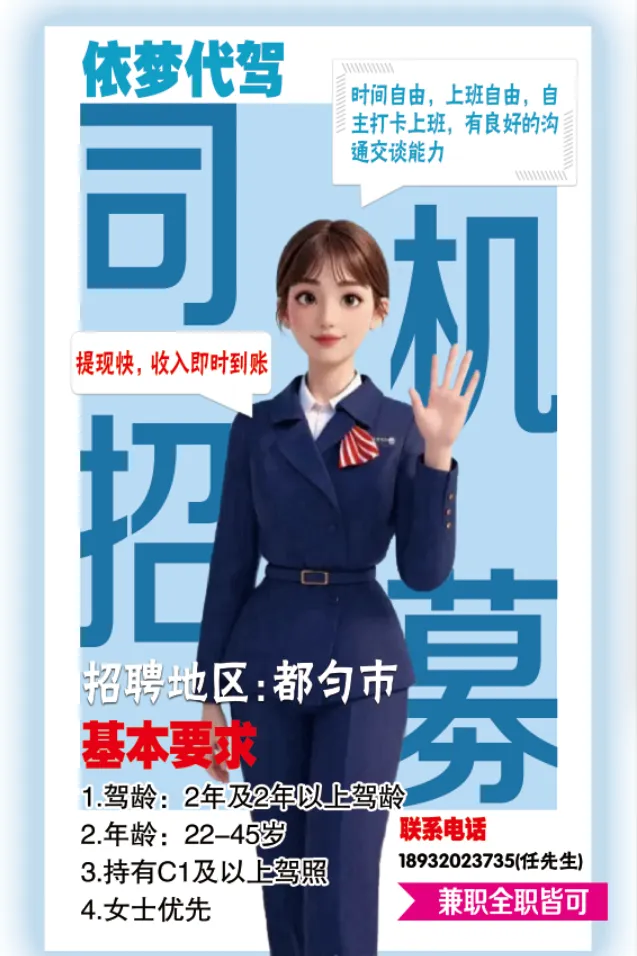 请把这条信息转发给身边的亲戚朋友和同学吧、现在找工作的人很多,您的举手之劳不会损失什么、却能帮到他们找工作!温馨提示: 按照人社部有关规定,用人单位招聘人员不得以任何名义向应聘者收取押金、培训、服装等费用,请大家谨慎选择,以免上当受骗。求职需谨慎,应聘成功后请务必签订相关合法劳动合同以保障自身利益,小编反复提醒各位找工作的求职人员,一定要远离“只加微信” “高佣金” “先垫付” “网络兼职” “刷单点赞” 等招聘信息。如在网络求职过程中招聘方要求下载APP软件,请大家注意切勿下载,以免发生资金损失!【工资待遇】平均4-5元/单,多劳多得,平均月收入4-6千,每月17号准时发工资!【招聘要求】满18岁,身份健康,会开电动车/摩托车(可自带,可租车),会手机导航,无案底。注:联系请说是在“都匀链上同城信息网(都匀信息网)”看到的信息,若信息与实际不符,请向小编反馈:151 8084 8653(微信同号)【招聘要求】男生已满,只招女生,20-45岁,能够长期,会简单电脑操作,会打字,主要负责前台收银,店里的卫生和看护小朋友的安全;【工作时间】10:00-22:00,周一到周四上1天休1天,月休 8天左右,周末节假日不休;【工资待遇】第一个月3000元,第二个月3200左右;注:联系请说是在“都匀链上同城信息网(都匀信息网)”看到的信息,若信息与实际不符,请向小编反馈:151 8084 8653(微信同号)关于我们:嘿泛泛女装是扎根贵州、快速发展的本土快时尚女装品牌。已在全省拥有超过400家门店,团队规模达1000余人。我们为热爱时尚、渴望成长的你,提供广阔稳定的发展平台!工作地点:贵州省内多地可选!我们在贵阳、遵义、六盘水、安顺、毕节、铜仁、黔东南州、黔南州、黔西南州等全省各地州市均设有门店,可根据你的所在地就近分配。(附:您可通过地图App搜索“嘿泛泛”查询离您最近的具体门店地址)1、年龄在18-40岁之间,形象端正,具备良好的服务意识。2、有快时尚女装销售经验者优先,无经验但学习能力强我们也欢迎!注:联系请说是在“都匀链上同城信息网(都匀信息网)”看到的信息,若信息与实际不符,请向小编反馈:151 8084 8653(微信同号)✅ 时间:15:00 - 01:00 事儿不多超轻松✅ 薪资:2600-3000 元 / 月 月休 2 天注:联系请说是在“都匀链上同城信息网(都匀信息网)”看到的信息,若信息与实际不符,请向小编反馈:151 8084 8653(微信同号)招聘条件:1:年龄20岁到55岁。2:男生身高170cm以上3:五官端正,热情,能吃苦耐劳,有责任感,集体荣誉感。4.无犯罪记录,无纹身,无不良嗜好,身体健康。5:退伍军人优先工作内容:负责区域秩序维护,保障财产安全;检查基础设施是否损坏,及时上报。注:联系请说是在“都匀链上同城信息网(都匀信息网)”看到的信息,若信息与实际不符,请向小编反馈:151 8084 8653(微信同号)贵州地区招电子散件外贸组装承包 ,首次合作者需要来实地考察,非诚勿扰。 工厂有大量电子产品订单对外加工 如:开关、微型计算器、无线鼠标、插座LED灯等…注:联系请说是在“都匀链上同城信息网(都匀信息网)”看到的信息,若信息与实际不符,请向小编反馈:151 8084 8653(微信同号)- 联系电话:18085409891(微信同号)。注:联系请说是在“都匀链上同城信息网(都匀信息网)”看到的信息,若信息与实际不符,请向小编反馈:151 8084 8653(微信同号)注:联系请说是在“都匀链上同城信息网(都匀信息网)”看到的信息,若信息与实际不符,请向小编反馈:151 8084 8653(微信同号)工作内容:负责幼儿早教课程教学与日常看护,参与教学方案设计注:联系请说是在“都匀链上同城信息网(都匀信息网)”看到的信息,若信息与实际不符,请向小编反馈:151 8084 8653(微信同号)学历:不限(大专以上工资额外多2000~3000)注:联系请说是在“都匀链上同城信息网(都匀信息网)”看到的信息,若信息与实际不符,请向小编反馈:151 8084 8653(微信同号)贵州隆福食品有限公司成立于2024年3月,由贵州黔盛实业集团有限责任公司和贵州宏福食品有限公司共同发起组建的一家集原产地订单采购、智能化加工生产、现代物流及冷链仓储为一体的食品公司。现因业务发展需要,结合公司发展战略及相关工作安排,拟向社会公开招聘4个岗位6名工作人员,岗位相关要求如下:招聘坚持德才兼备的选人标准,按照“民主、公开、竞争、择优”的原则。1.拥护中华人民共和国宪法,拥护中国共产党的领导,热爱社会主义,具有良好的政治素质和品行。2.思想政治素质好、清正廉洁、勤劳务实、遵纪守法。3.具备岗位所需的学历、专业、工作经验和能力素质。报考人员不得报考聘用后即构成回避关系的岗位。回避关系包括夫妻关系、直系血亲关系。报考人员如违反此规定,一经查实,取消报考资格。本次招聘工作按照报名、简历筛选(未通过者不另行通知)、资格审查、面试、体检、公示、聘用等程序进行。2.报名方式:符合招录条件者,填报《应聘人员信息登记表》(详见附件1),线上报名:将登记表统一命名为“岗位编码+应聘岗位+姓名+联系电话”发送至指定邮箱1404755243@qq.com;线下报名:到都匀市匀东镇广州产业园B4栋贵州隆福食品有限公司综合部填写相关信息。3.因报考人员填报失误、填报信息不一致或故意填报虚假信息造成的后果由报考人员本人承担。资格审查由公司招聘工作领导小组负责组织实施,公司将按照公布的招聘条件对报名