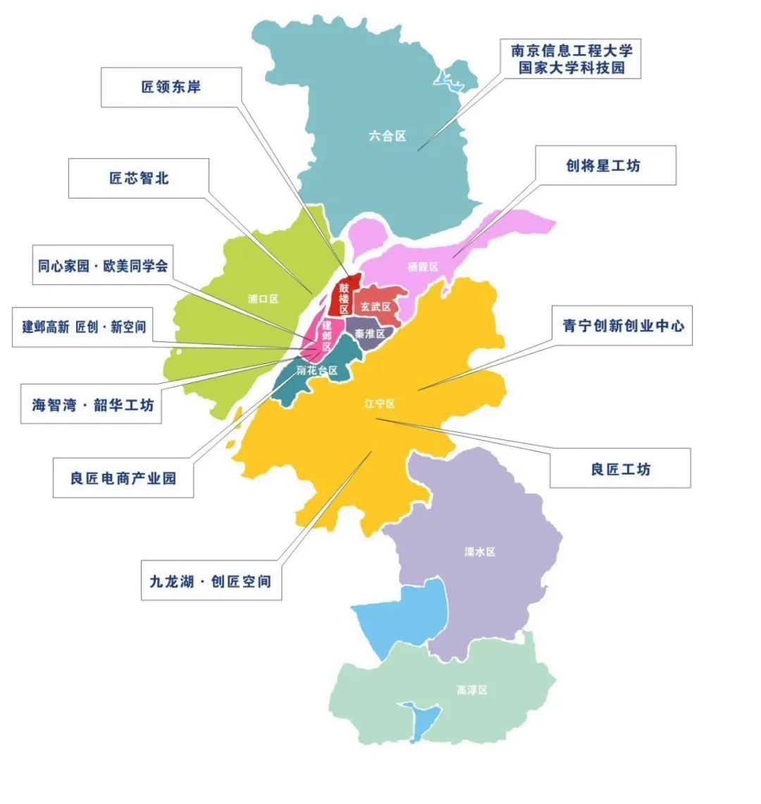 创匠空间由江苏良匠科技产业发展有限公司子公司运营,良匠公司成立于2016年,践行”孵育良企、匠心独运”的思想理念,深耕创新创业载体运营服务领域,线上线下双重发力,形成了以“良匠信息化公共服务平台+大创苗圃-众创空间-孵化器-加速器”的孵育全链条生态体系。截至目前,“良匠”运营面积达60000+平方米,旗下运营载体包括:良匠工坊、海智湾·韶华工坊、青宁创新创业中心、九龙湖·创匠空间、南信大国家大学科技园、创匠新工坊,孵化服务企业1500+,涵盖新一代信息技术、互联网、大数据、新材料、文化创意等多个领域。