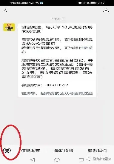 第①步扫描二维码关注公众号 | 第②步点击左下角小键盘符号 | 第③步编辑信息点击发送即可 |