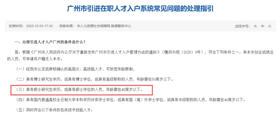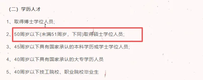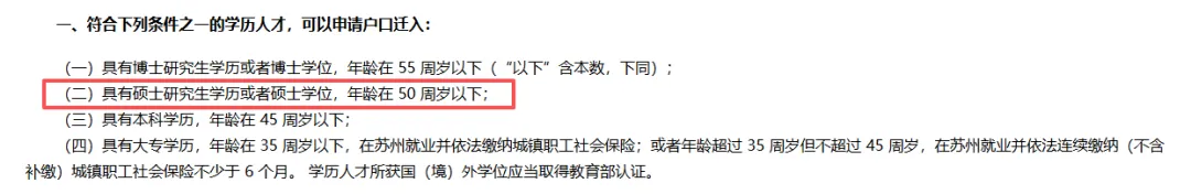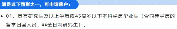 具有硕士研究生学历,或具有硕士学位的人员,年龄需在45周岁以下即可将户籍迁入本市。