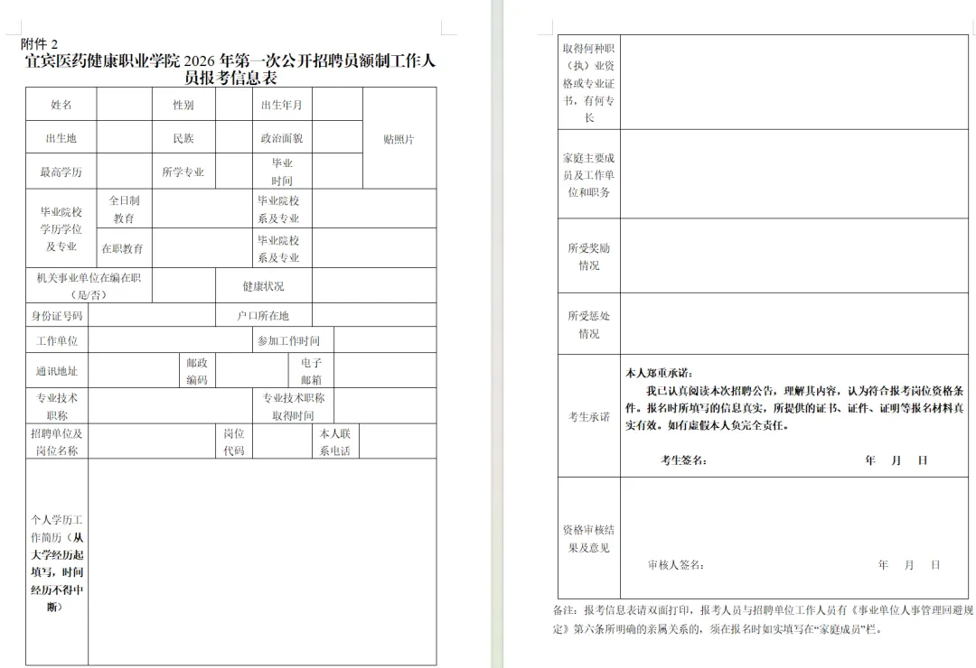 2.宜宾医药健康职业学院2026年第一次公开招聘员额制工作人员报考信息表.doc