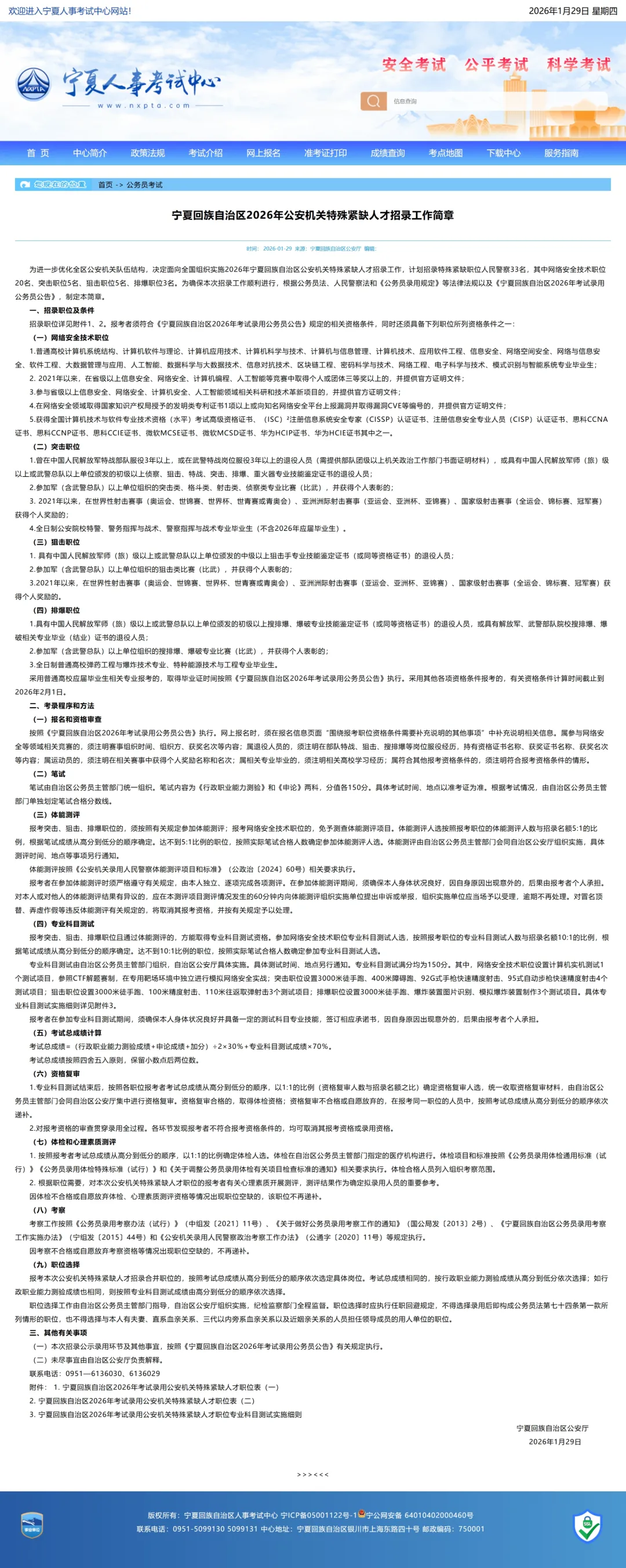 为确保本次招录工作顺利进行,根据公务员法、人民警察法和《公务员录用规定》等法律法规以及《宁夏回族自治区2026年考试录用公务员公告》,制定本简章。
