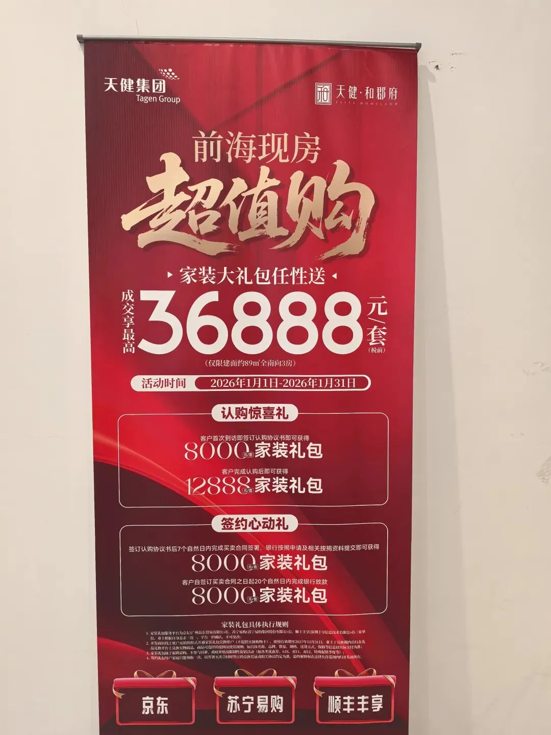 现在购房还有家装大礼包送,价值36888元,自己直接在京东/苏宁易购等网购自由挑选想要买的,家具,电器等等。宝中附近的天健和郡府人才房,不仅有核心地段优势,同时也是国企开发、品质有保障,离地铁也近,小区花园很大、园林景观也很好的中等规模项目,不是只有一两栋楼的没有园林的项目。