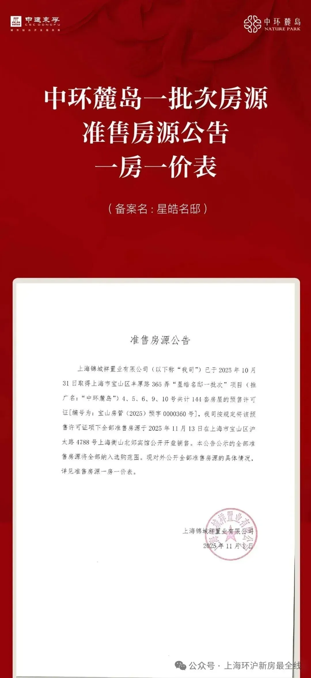 最新消息!中建八局宝山南大项目——【中环麓岛】11月13日开盘去化超8成,首批少量房源在售!