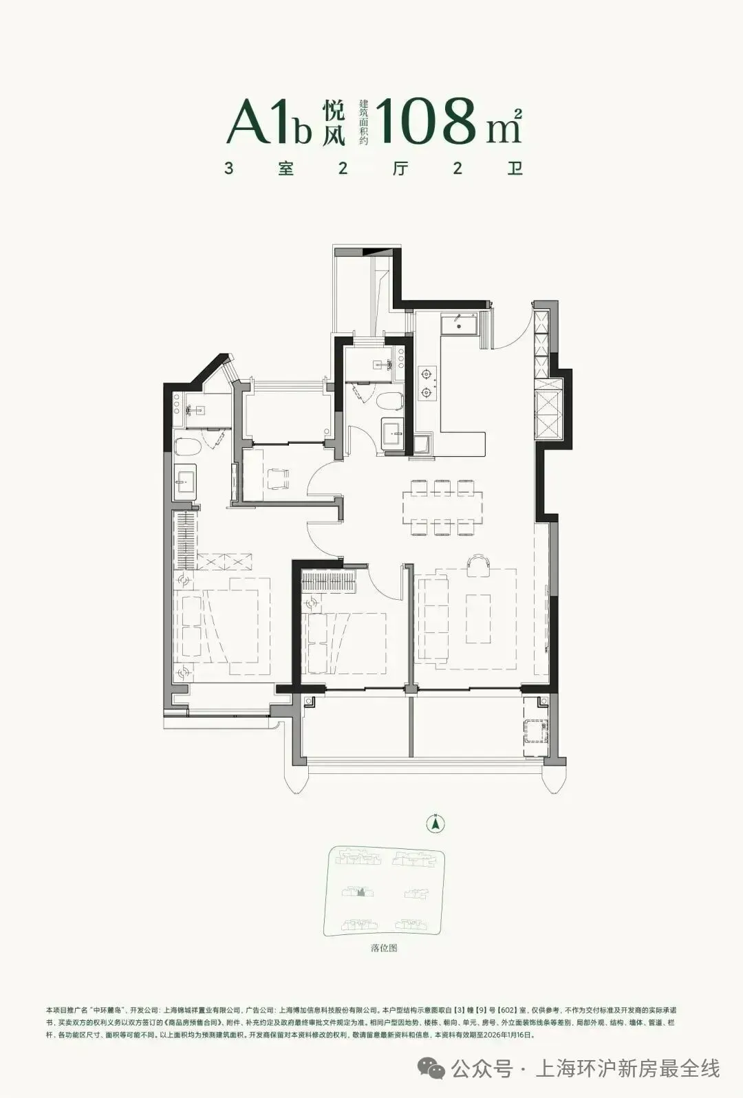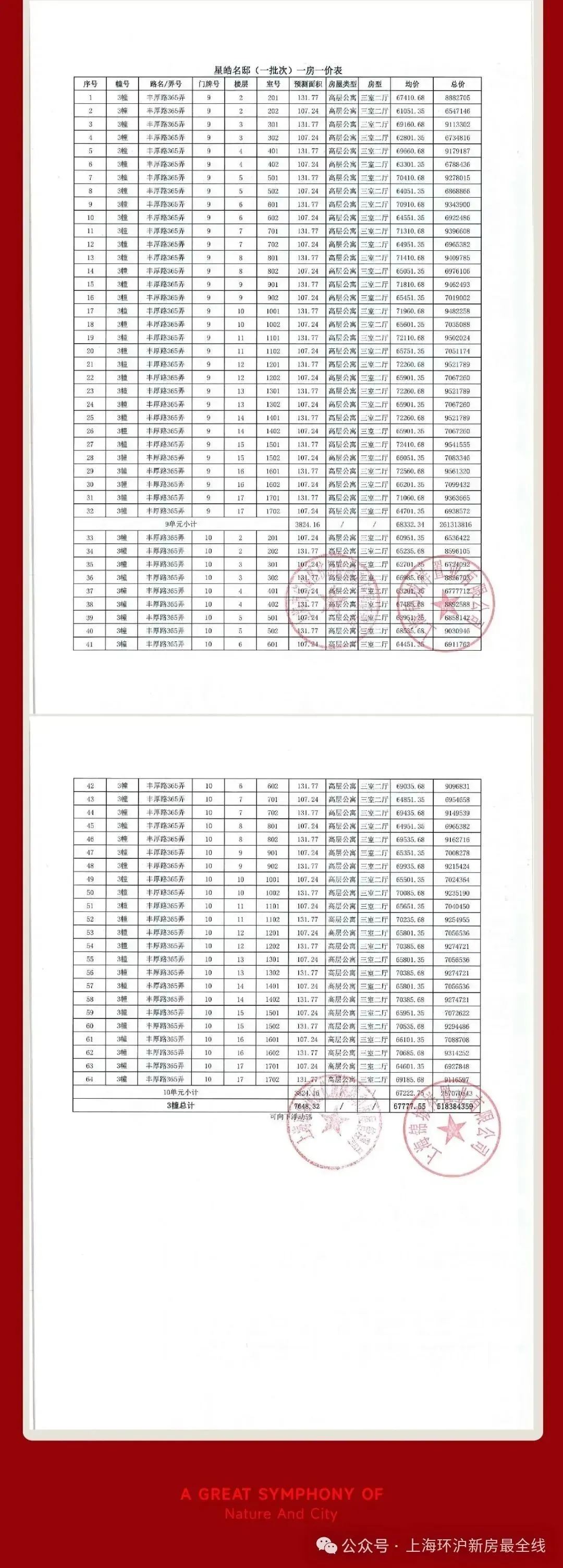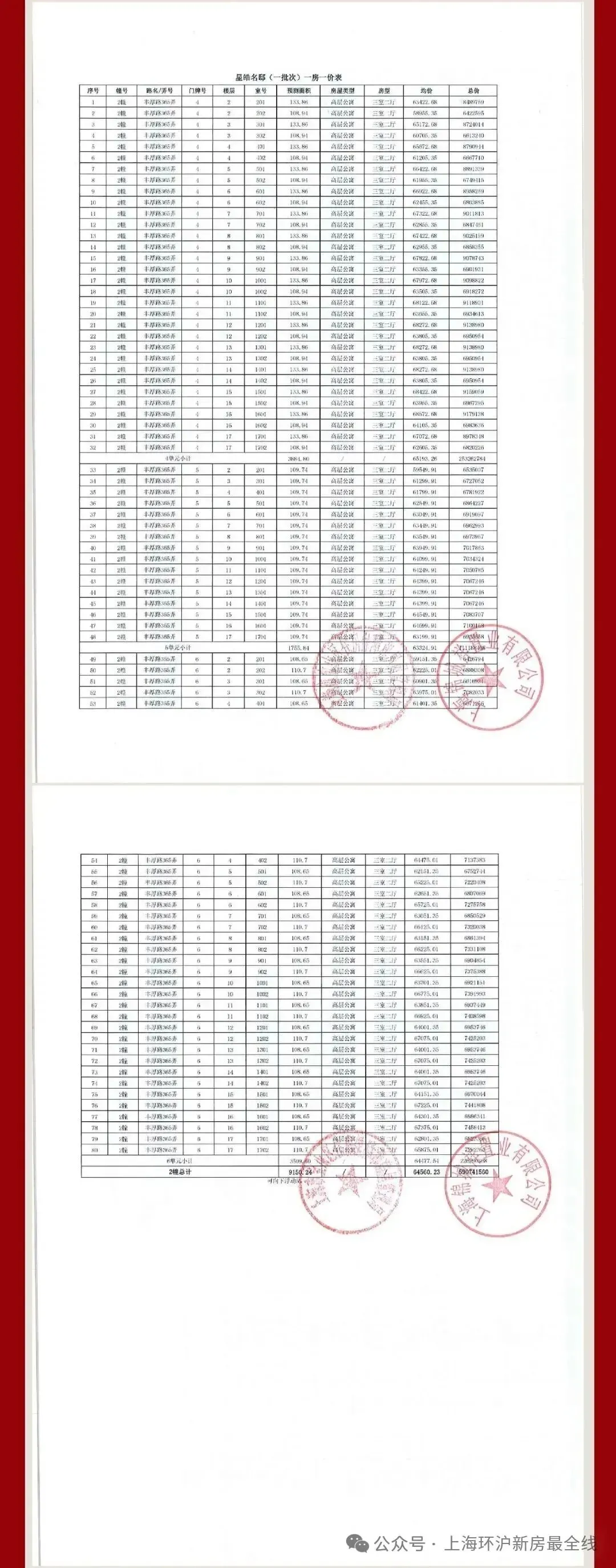 过会均价66025元/m²,总价约643万起建面约108㎡3房2厅2卫