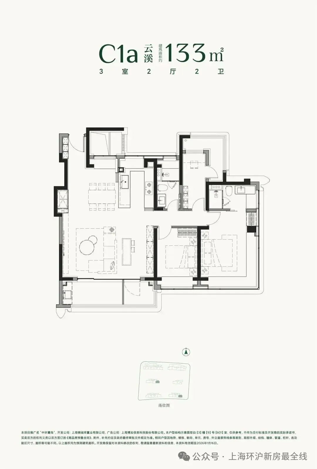 建面约133㎡3房2厅2卫