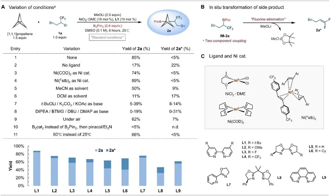 图2 镍催化氟烷基-硼化反应的条件优化过程