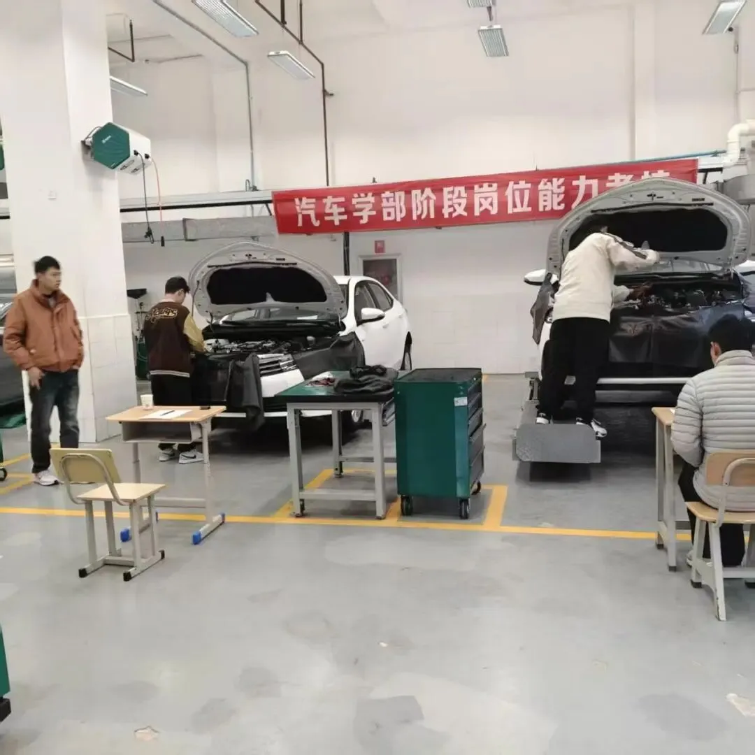 为确保考核精准对接岗位需求与行业标准,专业教师团队提前启动筹备工作,联合知名汽车服务企业技术骨干反复研讨考核方案,细化评分标准,梳理各模块技术要点与职业素养要求,为考核顺利开展筑牢基础。备考期间,学生们劲头十足、专注投入,利用实训课反复练习操作流程,在PDI检查的系统化规范、发动机拆装的精准高效、服务礼仪的细节把控上狠下功夫,展现出浓厚的学习热情与扎实的技能积累。