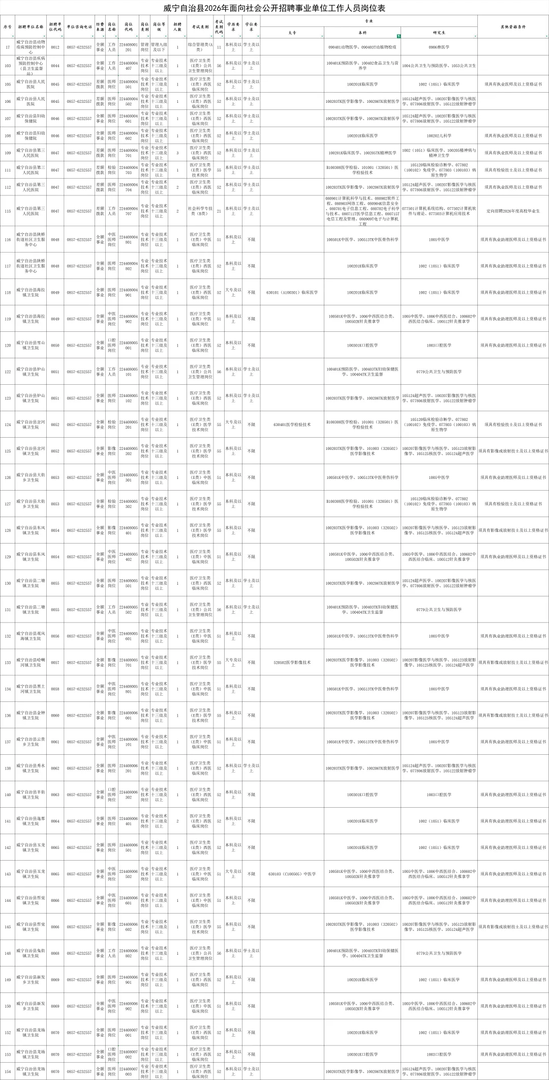 1.威宁自治县2026年面向社会公开招聘事业单位工作人员岗位表.xlsx