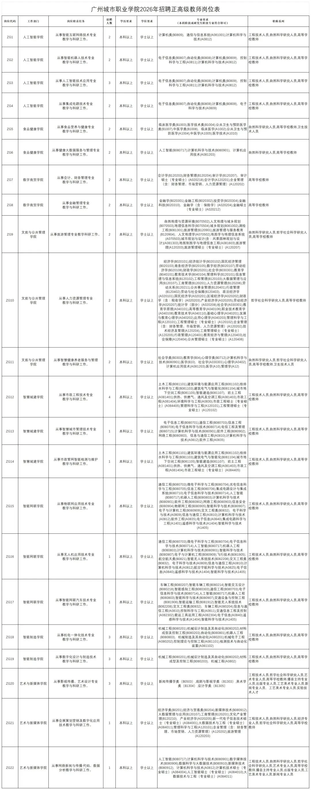 (八)具备报考岗位所需其他条件,详见附件1《广州城市职业学院2026年招聘正高级教师岗位表》。