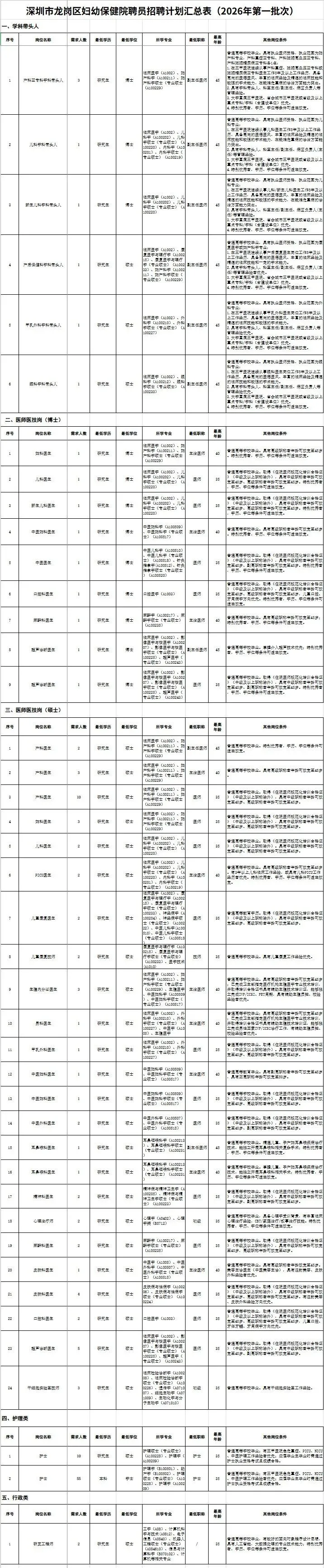 附件:深圳市龙岗区妇幼保健院招聘计划汇总表(2026年第一批次)