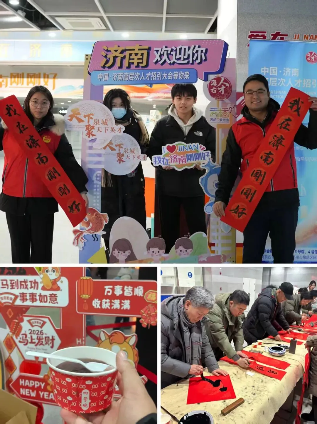 本次活动邀请非遗传承人现场展示非遗技艺,向青年人才送“福”、送春联,腊八节当日还准备了暖心“腊八粥”,将新春祝福、非遗韵味与城市IP宣传融为一体,让青年人才充分领略泉城温情与文化底蕴。