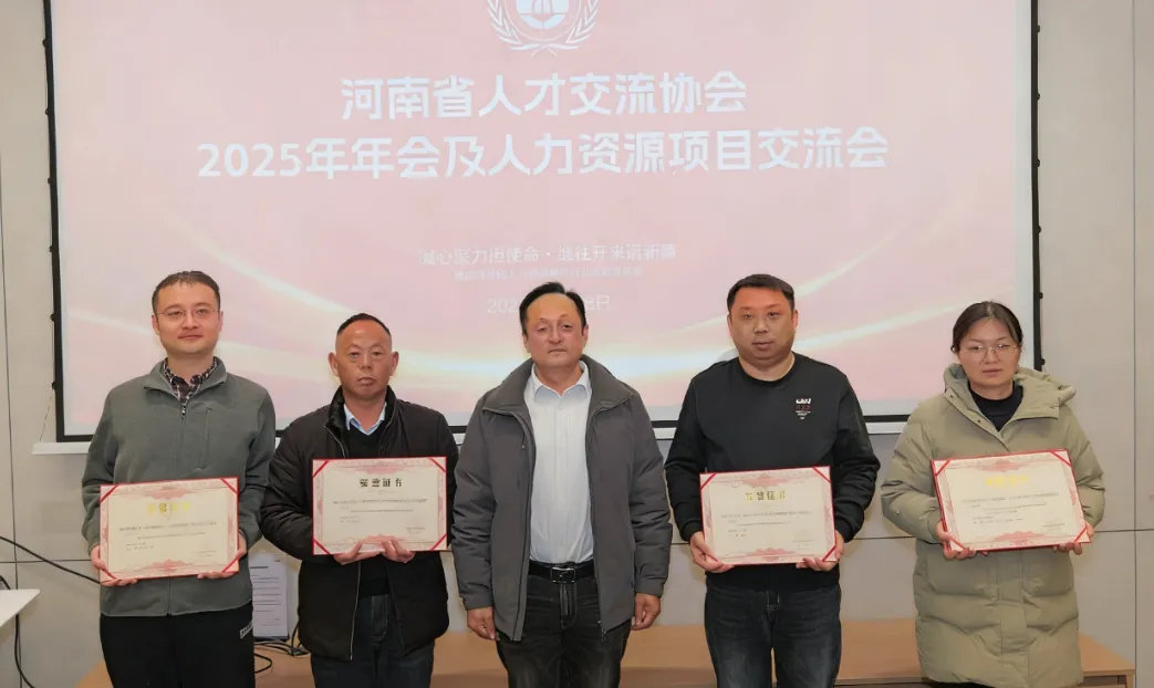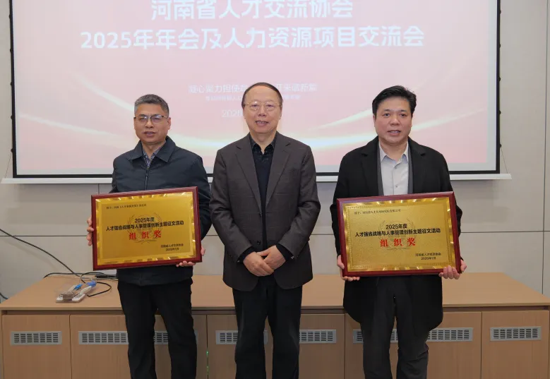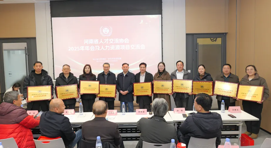 会上,省人才交流协会为树立鲜明榜样、大力弘扬先进典型,隆重举行了年度表彰典礼。中共河南省委咨询组研究员,省人社厅原党组副书记、副厅长,省公务员原党组书记、局长刘京州,河南《人才资源开发》杂志社副社长史新建,协会党建负责人王新生,副会长史广慧、张俊江等协会领导,为获得 2025 年度协会先进集体和个人、“全省人才强省战略与人事管理”优秀论文和组织奖的集体与个人进行了颁奖。